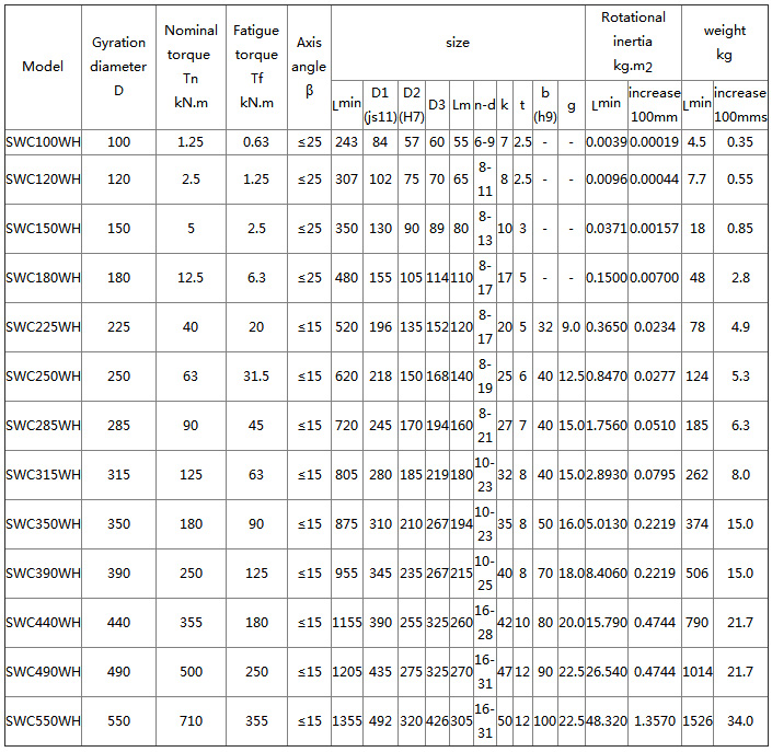 The SWC-WH short telescopic welded universal coupling is one of the most commonly used couplings. By utilizing the characteristics of the structure, it is possible to continuously rotate the two axes at different angular speeds or large axial movements without the same axis or axis, and reliably transmit torque and motion. It is widely used in the mechanical shafting of metallurgy, lifting, engineering transportation, mining, petroleum, shipbuilding, coal, rubber, papermaking machinery and other heavy machinery industries to transmit torque.