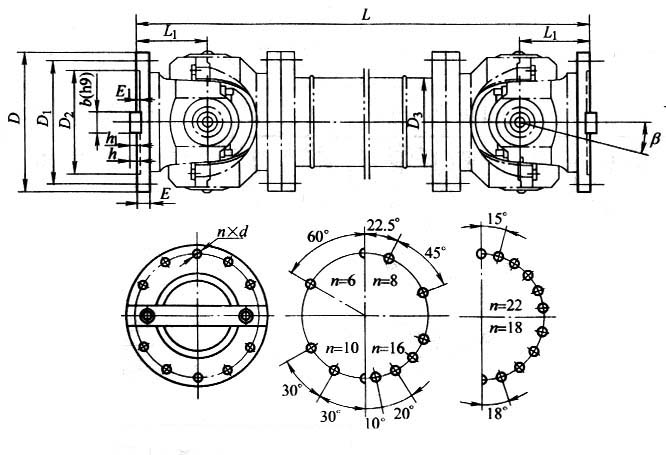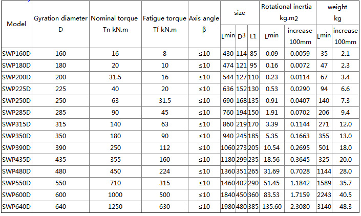 SWP-D universal coupling Features and applications: Bearings are wearing parts. In order to facilitate the replacement of the bearing, the bearing seat gland is made into a split type, bolted, and can work under the condition of β≤5°~10°. Applicable to rolling machinery, lifting and transportation machinery, engineering machinery, mining machinery, petroleum machinery and other heavy machinery, connecting two different axes of shaft drive, can not buffer, reduce vibration. Type A - has a telescopic length; Type B - has a telescopic short type; Type C - no telescopic short type; D type - no telescopic long type; E type - has a telescopic double flange length; F type - large telescopic long type; ZG type - dressing through type FG type--reverse through type ![]() ![]() |