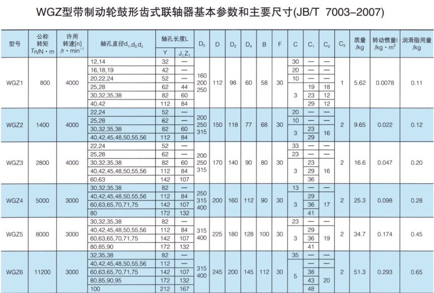 WGZ带制动轮鼓形齿式DAJIANG.COM_大江(中国)的参数及尺寸:(JB/T 7003-2007) mm