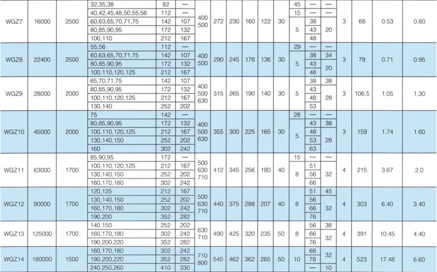 WGT型--接中间套型,适用于两轴长距离联接,许用转速[n]取决于中间套的长度和质量,并应验算临界转速;