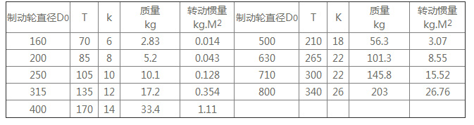注:1、质量与转动惯量是按******直径的Y轴孔计算的近似值,未计算制动轮。