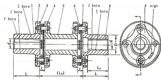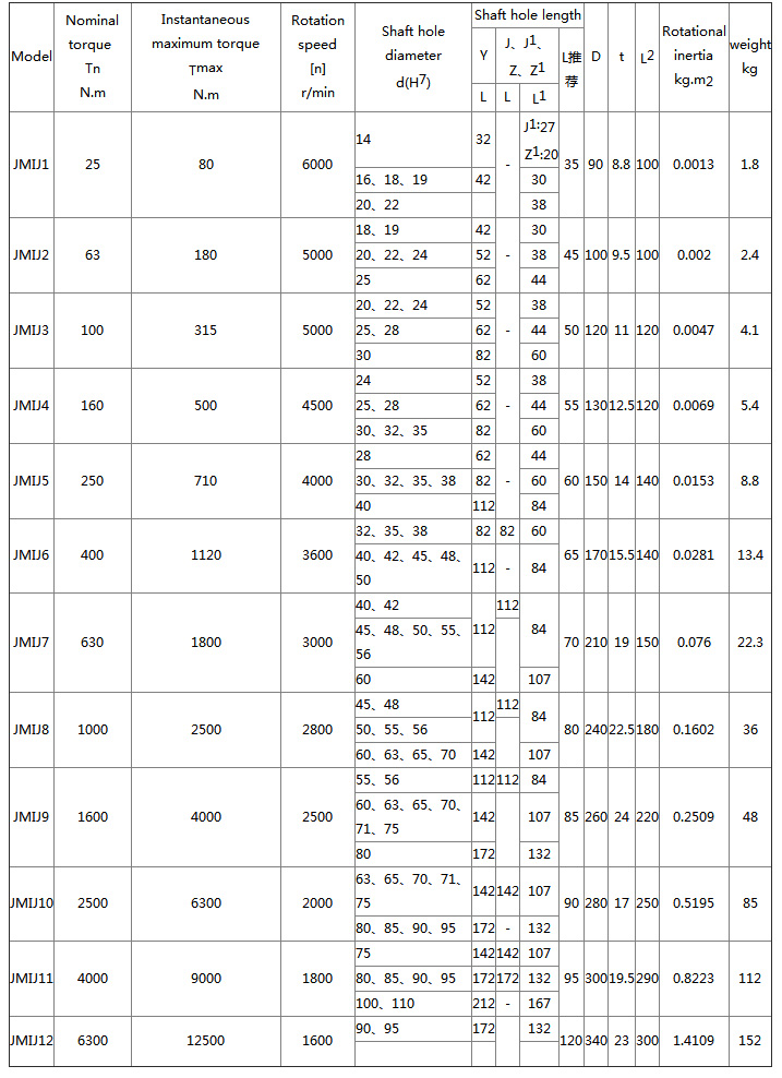 Features and application of JMIJ diaphragm coupling: Compared with flexible joints of metal elastic components, it has high mechanical strength, large bearing capacity, light weight, small size, high transmission efficiency and high transmission accuracy, and good reliability. Easy to remove and so on. Suitable for medium, high speed and large torque shaft drive. Compared with the drum-shaped gear coupling, it has no relative sliding, no lubrication, long service life, no noise, simple structure and so on. It can partially replace the drum-shaped toothed auxiliary device. Not affected by temperature and oil. It has the characteristics of acid resistance, alkali resistance and corrosion resistance. It can be used in high temperature, low temperature and working conditions with oil, water and corrosive media. It is suitable for shafting transmission with little change in load of various mechanical devices. It is extremely versatile and has been widely used in industrialized countries. It is a high-performance flexible coupling 重点 which is mainly promoted and applied in China. High-precision diaphragm coupling can be used for High speed conditions. Compared with the toothed coupling, the diaphragm coupling has no relative sliding, no lubrication, no sealing, no noise, no maintenance, and is convenient to manufacture. It can partially replace the gear coupling. The diaphragm coupling has been widely used in industrialized countries in the world. In practical applications, the intermediate shaft type is generally adopted to improve the offset compensation performance of the two axes. JMI type - basic type with countersink; JMIJ type--with countersunk and intermediate shaft type; JMII type - no counterbore basic type; JMIIJ type - no countersinking intermediate shaft type; ![]() ![]() |