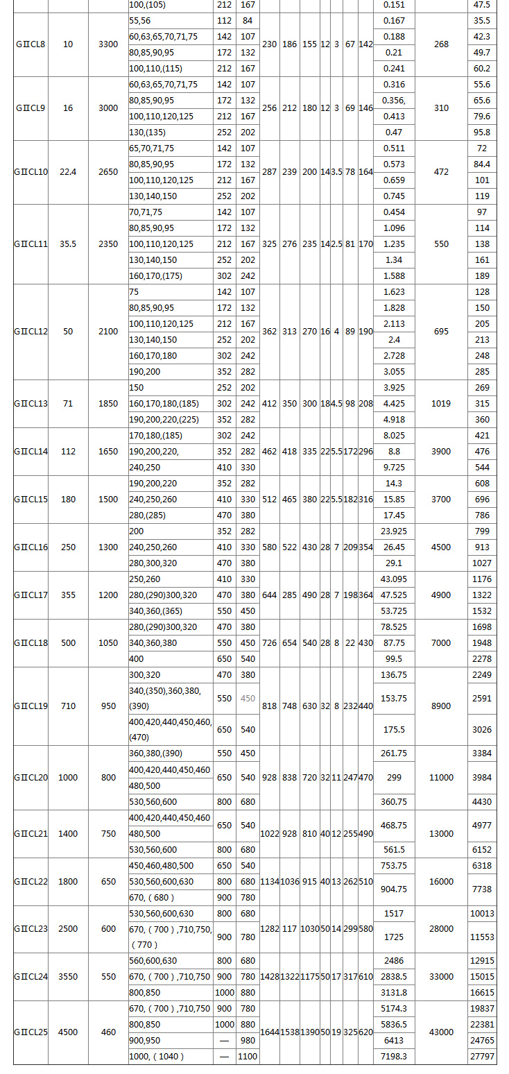 Features and applications: With a small amount of axis offset compensation performance, can not buffer, reduce vibration. The outer shape is small, theoretically, the transmission torque is large, and it needs lubrication and sealing, but the noise is large and the price is expensive, and it is used for connecting the horizontal two coaxial line shaft transmission. It is used to connect two horizontal coaxial lines under low speed and heavy load conditions, such as metallurgical machinery and heavy machinery. It is not suitable for high-speed, high-precision shafting transmission. It is not suitable to use frequent starting and reverse rotation.