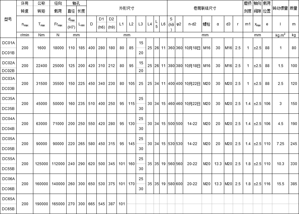DC系列卷筒用鼓形齿式DAJIANG.COM_大江(中国)主要参数及尺寸: mm