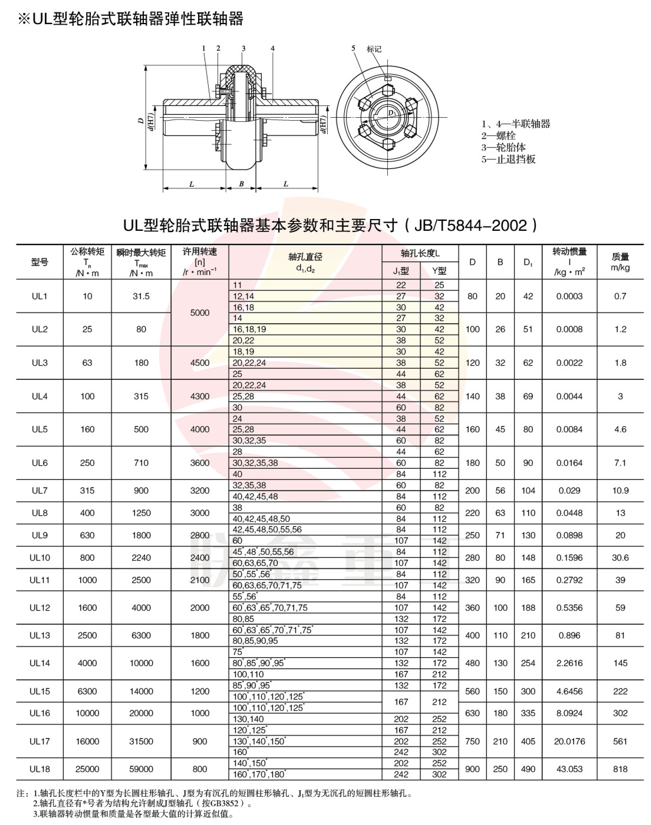 UL型轮胎式DAJIANG.COM_大江(中国) 特点及应用场合:有较高弹性,扭转刚度小,减振能力强,补偿量较大,有良好的阻尼,结构简单,不用润滑,装拆维护方便.噪声小,径向尺寸大,承载能力低,过载时产生较大轴向附加载荷,使用寿命取决于橡胶产品质量,适用于起动频繁,正反转多变、冲击振动较大的轴系传动,可在有粉尘、水份工况环境下工作,不适用于高温、高速、大转矩和低速重载工况条件。