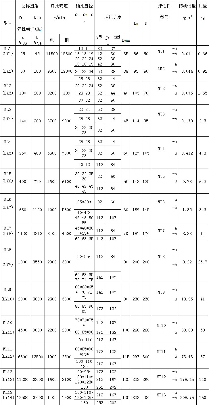 ML(LM)型梅花形弹性DAJIANG.COM_大江(中国)的参数及主要尺寸:(GB/T 5272-2002) mm