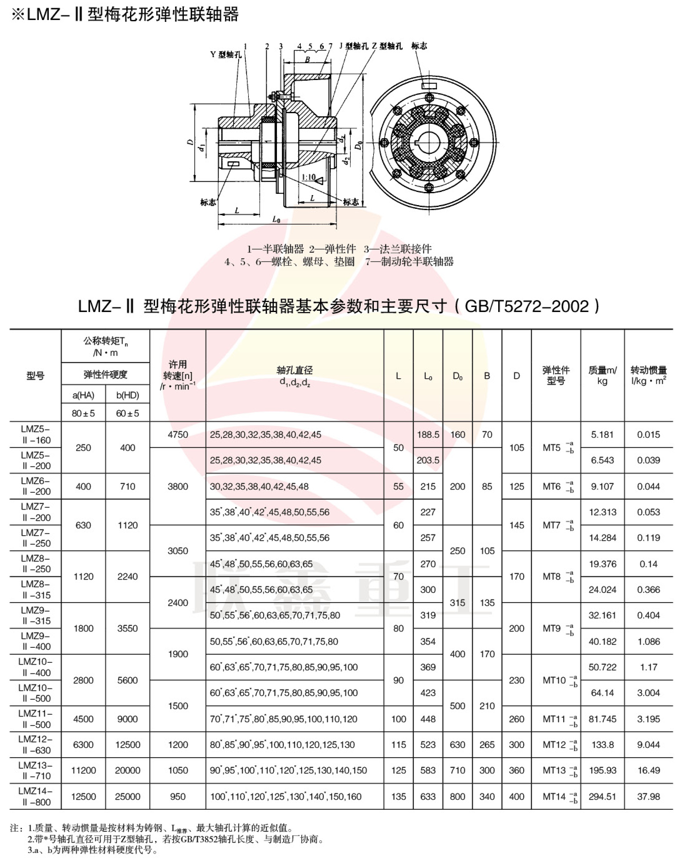 MLL-II(LMZ-II)梅花DAJIANG.COM_大江(中国) 特点及应用场合:具有补偿两轴相对偏移、减振、缓冲性能、径向尺寸小,结构简单、不用润滑、承载能力较高,维护方使、更换弹性元件需轴向移动 (MLS型除外),适用于联接同轴线,起动频繁,正反转变化,中速、中等转矩传动轴系和要求工作可靠性高的工作部位。不适用于重载、低速及轴向尺寸受艰制,更换弹性元件后两轴对中困难的部位。