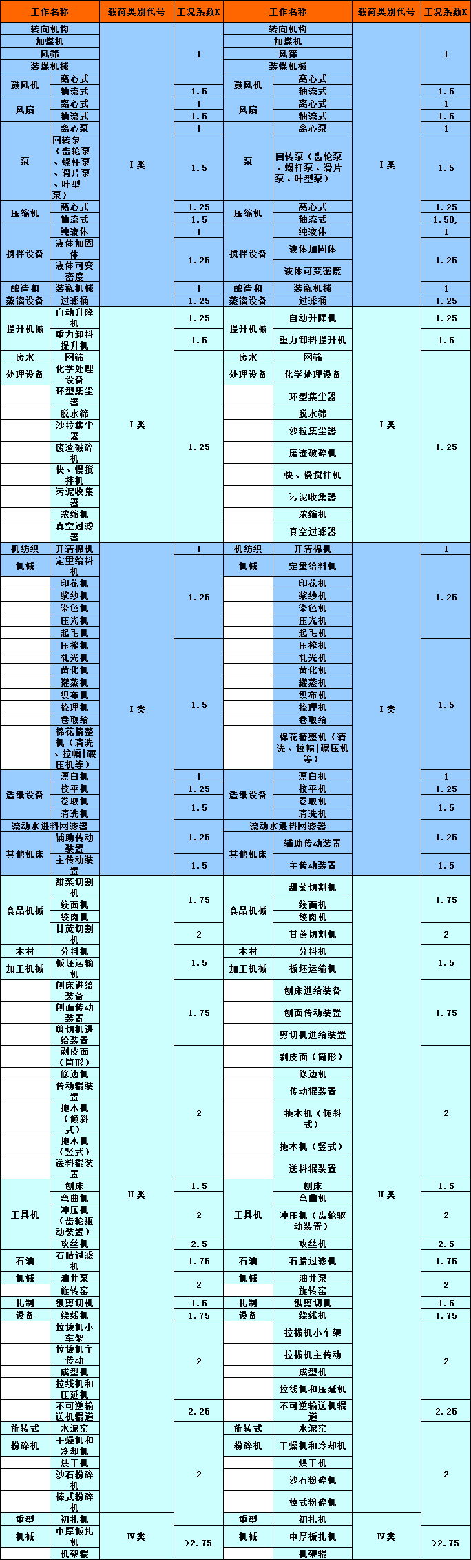 b.上表所列K值,其动力机为电动机和透平,若为其他动力机应考虑动力机系数Kw