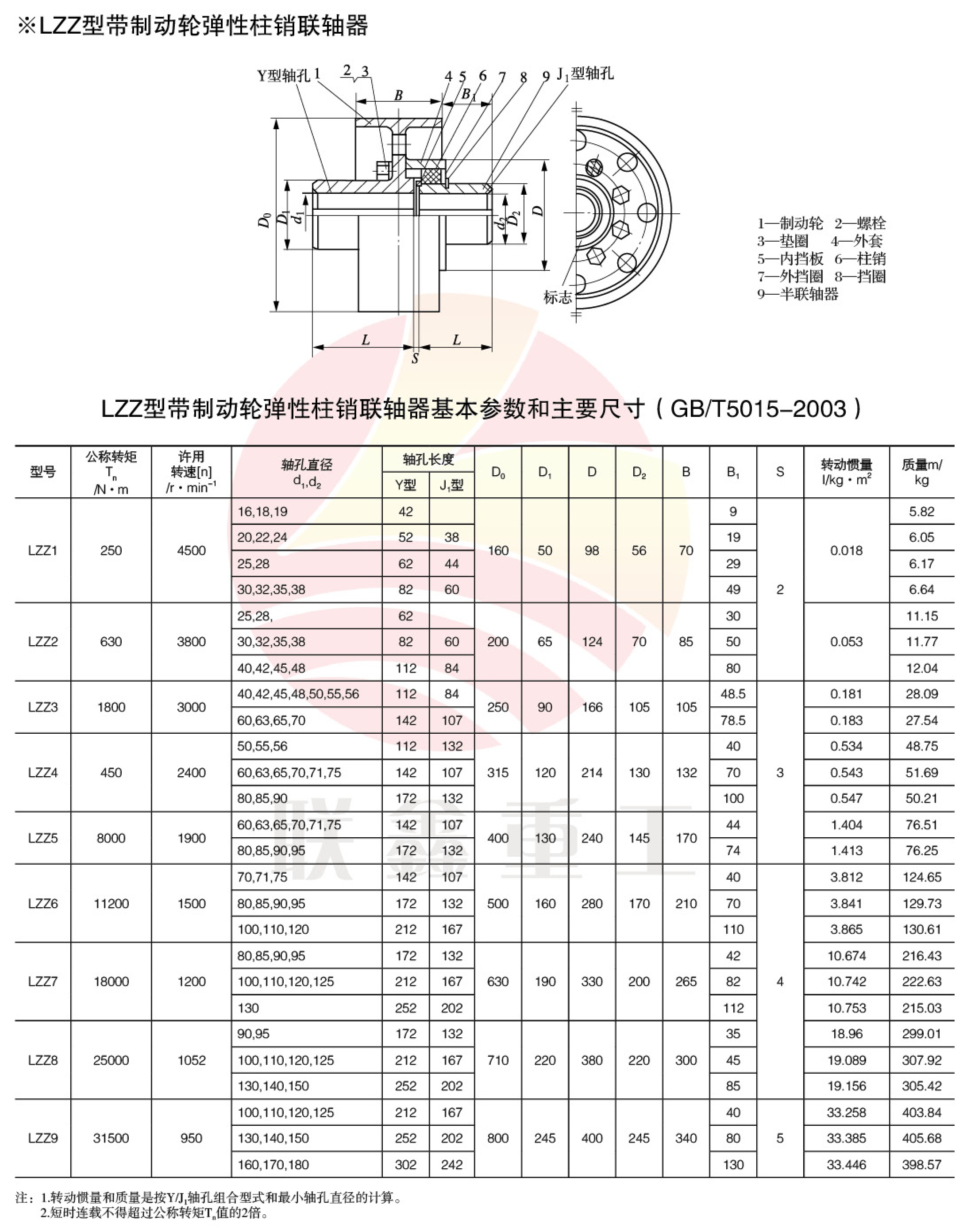 ZLL型带制动轮弹性柱销齿式DAJIANG.COM_大江(中国)简称”弹性柱销齿式DAJIANG.COM_大江(中国)“通过弹性柱销传递转矩实现两半个DAJIANG.COM_大江(中国)联接,具有轴偏移补偿能力和减震性能,可代替部分齿式DAJIANG.COM_大江(中国)。ZLL型带制动轮弹性柱销齿式DAJIANG.COM_大江(中国)与齿式DAJIANG.COM_大江(中国)相比,结构简单且组成零件较少,制造较方便,不用齿轮加工机床。ZLL型带制动轮弹性柱销齿式DAJIANG.COM_大江(中国)属于柱销DAJIANG.COM_大江(中国)的一种,按(GB/T5015-2003)标准制作;工作温度为-20 ~70℃;轴向许用补偿量为:±1.5~3mm;径向许用补偿量为0.3~1.5mm;角向许用补偿量为0.5°。 ZLL型带制动轮弹性柱销齿式DAJIANG.COM_大江(中国)的弹性柱销利用尼龙棒车削而成,所以也称为尼龙柱销齿式DAJIANG.COM_大江(中国),尼龙柱销为自润材料不需润滑,拆下档板即可更换。尼龙柱销置于两个半DAJIANG.COM_大江(中国)与外环之间的对合孔中,DAJIANG.COM_大江(中国)通过柱销传递转矩,ZLL型带制动轮弹性柱销齿式DAJIANG.COM_大江(中国)传递公称扭矩为250~31500N.m;许用转速为4000~950r/min;属于高扭矩低转速型DAJIANG.COM_大江(中国)。